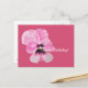 The design shows a digitally painted pink pansy on a pinkish-red background with the writing "Happy Birthday!" You can easily change the colour of the background and replace the text with your own words by clicking on the "customize it" button.