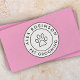 A retro modern business card featuring a circular black and white logo on the front on a pink background. The background color can be changed to anything that matches your business. This would be perfect for a dog grooming service or anyone that works with pets such as a dog walker, doggy daycare service or pet shop.