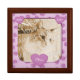 Honor the memory of a beloved animal family member with this decorative keepsake box. A purplish-pink frame with deep pink paws surrounds a photo of your pet that you add. Love hearts at both corners and at the bottom edge contain customizable text that can easily be changed to your own pet’s information. From my original digitally created image.