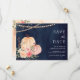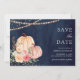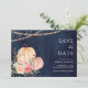 Pink Peach Pumpkin Floral Navy Blue Wedding Save The Date