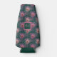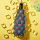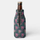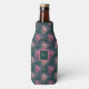 Pink Peacock Feathers and Monogram on Deep Green Bottle Cooler