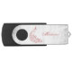 Save your important files and digital images with a Pink Peacock Personalized USB Swivel Flash Drive. Flash drive design features a vibrant pink peacock resting on a white leaf vine against a gray grunge background. Additional gift items available with this design as well as a variety of colors. Personalize for yourself or makes a great gift.