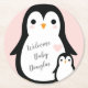 Pink Penguin Baby Shower Round Paper Coaster