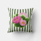 Pink Peonies and Green Stripes Throw Pillow