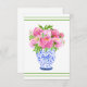 Pink Peonies Chinoiserie Vase Green Border Thank You Card