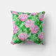 A pillow featuring a preppy pattern with pink peony flowers elegantly intertwined with greenery. The overall design exudes a fun, lively vibe that would brighten any space, making it a perfect decorative piece for a cozy living room, office, or bedroom. This pillow brings a preppy and colorful flair to home decor!