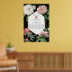 A beautiful watercolor pink and white peonies flower wedding design with gold geometric frame on a black background. A unique design that uses vintage botanical peony florals in pink and white color tones. An elegant pink and white peonies floral design with a dash of greenery. A chic gold geometric frame wedding seating chart design with modern elements. Matching wedding stationery items and other wedding invite formats are also available.