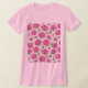 Womens t-shirt with beautiful pink peonies and green leaves on pink.