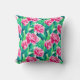 Pillow in a soft watercolor pattern of pink peonies and green leaves, on a white background