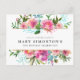 Such pretty pink peonies. They create an upper and lower border for the announcement of a 90th birthday party celebration. Three lines of text let you customize your greeting on the front of the birthday invitation postcard. The birthday party details are on the back. The peonies have dark pink centers and soft pink outer petals. The modern botanical design includes deep olive leaves and turquoise blue vine outlines. All text can be edited.