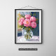 Pink Peony Bouquet Watercolor Floral Painting Art Poster Print
