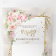 Pink Peony Floral Gold Script & Frame Tri-Fold Invitation