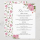Romantic wedding dinner menu list featuring watercolor illustration of pink peony flowers with greenery.