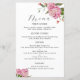 Pink Peony Flower Wedding Dinner Menu