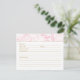 Pink Peony Gold Wedding Bridal Shower Recipe Card