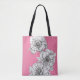 The original, mixed media art was hand-drawn in ink and then outlined in pink acrylic. The beautiful flowers are delicate and timeless, bursting off of the tote. Original art by Joleen Voss @joleenvoss_studio