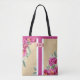 This faux burlap textured tote bag features beautiful watercolor pink peonies with white flowers and greenery. It also has a bold stripe in the center and a place for an elegant monogram at the top for personalization. You can easily customize the font style and the font color of this tote bag by clicking on the "Edit Design" option. This tote is sturdy, well-made and has plenty of room to hold everything whether you’re out and about or on a weekend gateway.