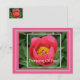 KEEP A STACK OF THESE POSTCARDS ON HAND TO SEND OFF QUICK NOTES TO FRIENDS AND FAMILY. THIS ONE, FEATURING A DEEP PINK-COLORED PEONY WITH GOLD CENTER, SAYS, "THINKING OF YOU" BUT FRONT TEXT IS CUSTOMIZABLE, SO YOU MIGHT WANT TO HAVE A DIFFERENT MESSAGE. CHOICE OF FONT STYLES, COLORS, SIZES,ETC. JUST KEEP ALL TEXT WITHIN THE RED DOTTED LINES WHEN CUSTOMIZING.