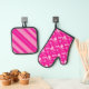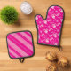 Pink Peppermint Snowflakes Candy Cane Stripe Name Oven Mitt & Pot Holder Set