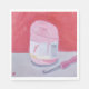Oil painting print of a skein of pink yarn and crochet hook.