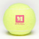 PINK INK personalized custom-printed tennis balls printed with custom name or text in a big bold block serif letter font and simple modern tennis monogram.