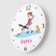 Pink Personalized Hockey Girl Cartoon Room Decor Large Clock