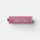 Soft rose pink background with crisp white script lettering