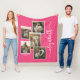 Pink Personalized With Name 5 Photo Collage Fleece Blanket