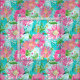 A seamless preppy pattern featuring pink flowers on a minty green background with small orange dots. The design has a hand-painted look, combining charming floral elements with playful dots to create a fresh and stylish effect.