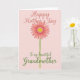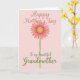 This card features a stylized daisy-like flower centered on a uniform blush pink background, with coral-pink petals circling a sunny yellow center that has a dotted inner ring for extra texture. A slim green stem drops straight down from the bloom, giving the layout a calm, upright balance. The gentle color pairing and soft edges make the flower feel like a quiet gift, as if it’s being offered with a tender, appreciative glance ❤️. Near the top, the words “Happy Mother’s Day” sit above the flower in coral lettering with smooth, flowing strokes. Below the stem, “To my beautiful Grandmother,” appears in deeper green lettering, visually grounding the design and adding a family-focused note 👩. The spacing leaves plenty of open pink around the elements, so the flower and messages feel close and connected without crowding. The petals show subtle shading and neat outlines, while the yellow center is ringed with tiny dots that read like a soft halo.