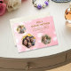 Mother’s Day card with three photos cover and custom Bible verse on cover on pink glitter background.