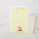 Stationery featuring an illustration of a pink pig standing in a mud puddle at bottom. Personalize the text. Top text is pink, bottom text is brown.