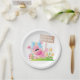 Serve up treats on these festive paper plates featuring a happy pink piglet and a cute blue hairbow. The design captures a whimsical animal playing in a floral garden with a butterfly friend, making them a hit for any farmhouse nursery party. With the never hurry worry phrase printed on each plate, they bring a sense of calm and fun to your dining table. These sweet piggy party accessories are ideal for celebrating a baby girl gift milestone or a special toddler birthday.