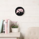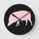 This awesome clock features a cartoon style pink pig. It has its head down ready to gobble up whatever food it can find. The background is black to show off the pig at its best.