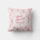 A charming pattern of pink pine trees is a lovely vintage watercolor. Snowflakes fall in the forest. All of the text, including "Merry Christmas", which is in a fine pink script, is editable on this pretty holiday throw pillow. Be sure to change the example names and the year.