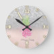 Pink Pineapple Glitter Silver Glitter Bokeh Round Clock