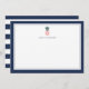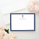 Our chic personalized stationery flat cards feature a navy blue border, a green and pink tropical pineapple illustration, and your name, monogram or choice of personalization. Cards reverse to wide navy blue and white stripes for a preppy chic look.