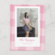 This graduation is pretty in pink plaid with a single photo and matching plaid on the back.