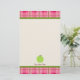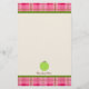 Stationery featuring a pink plaid border over top and bottom with green trim. Personalize with your name at bottom under illustration of green apple.
