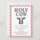 Pink Plaid Holy Cow First Birthday Invitation