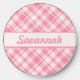 Destei's pink color plaid / tartan pattern together with a personalizable text area for a name or other custom text.
