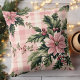 Pink Plaid Poinsettia Christmas Throw Pillow