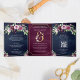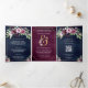 Pink Plum Floral Ampersand Navy QR Code Wedding Tri-Fold Invitation