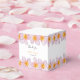 This design features pink frangipani / plumeria flowers. A tropical design elegantly framed with pink frangipani flowers and centered text. The bride's and groom's names are emphasized with an orange color chosen from the center of the plumeria flower. These popular tropical Hawaiian flowers are ideal for an elegant destination beach wedding. Tropical wedding favor box design with modern elements. Matching wedding invitations and other stationery items are also available.