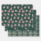 Pink Poinsettia Flowers on Dark Green Wrapping Paper Sheets
