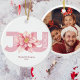 Pink Poinsettia Joy Christmas Photo Ceramic Ornament
