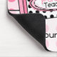 A mousepad featuring a pink background with pink polka dots. Illustration of matching pink crayon at center. Label of crayon is white with black polka dots. Text on crayon reads "1st Grade Teacher." Personalize with your name.