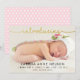 Birth Announcement horizontal landscape newborn photo with gold hand lettering and pink polka dots