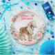 Pony birthday giddy up cowgirl cowboy party custom party paper plates. Pink background, pony with pink roses for horses, ponies, equestrian themed birthdays.