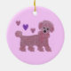 Graphic illustration of a pink poodle and hearts design. This is a toy poodle that is adored by children and families and makes a perfect Christmas ornament for your tree.